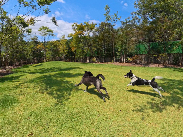 広々としたプライベートドッグランでは、ワンちゃんが思いきり走り回れる環境をご用意。