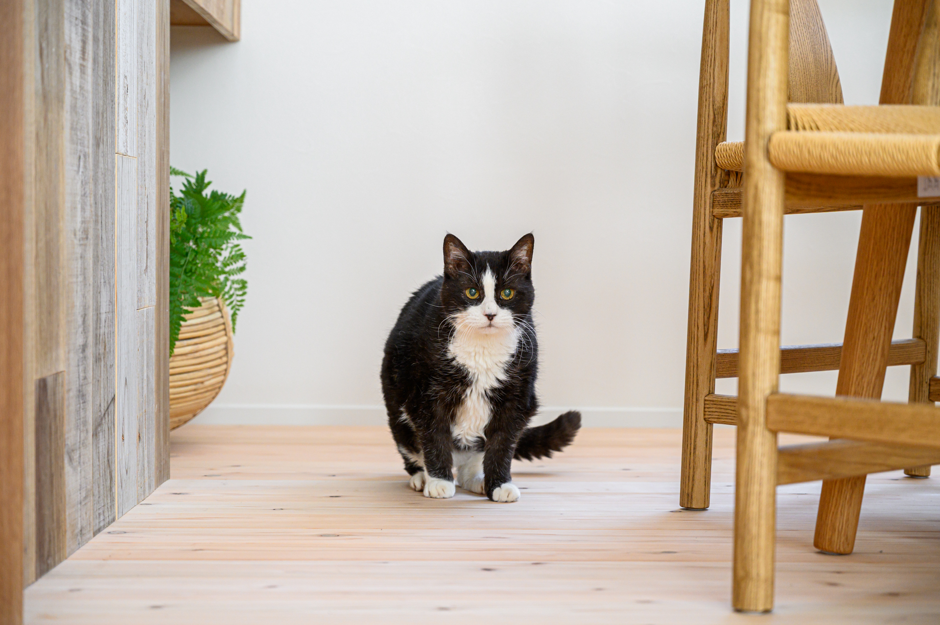 さらに、工事の途中には新たなご家族としてワンちゃんが仲間入りし、猫3匹と合わせていっそうにぎやかな暮らしに。完成後には、みんなが仲良く過ごす様子がとても印象的で、空間づくりがご家族の時間をより豊かなものにしていることを実感しました。