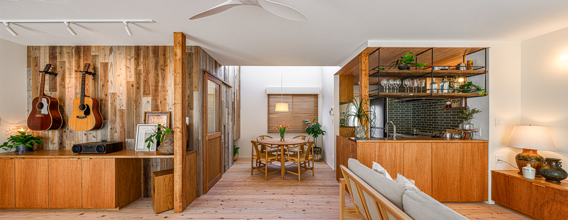 全体として、「趣味を楽しむ開放感」と「暮らしを整える機能性」を両立させた、A様ご家族らしい住まいへと生まれ変わりました。